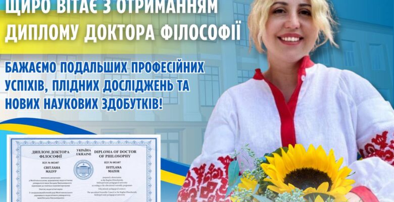 🎓 ВІТАЄМО З ОТРИМАННЯМ ДИПЛОМА ДОКТОРА ФІЛОСОФІЇ!