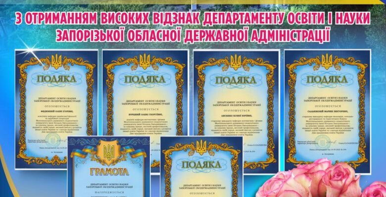 🏆💐Відзнаками Департаменту освіти і науки Запорізької обласної державної адміністрації за вагомий особистий внесок у розвиток вищої освіти України, багаторічну сумлінну й плідну науково-педагогічну працю, високий професіоналізм із нагоди Дня працівника освіти України нагороджуються: