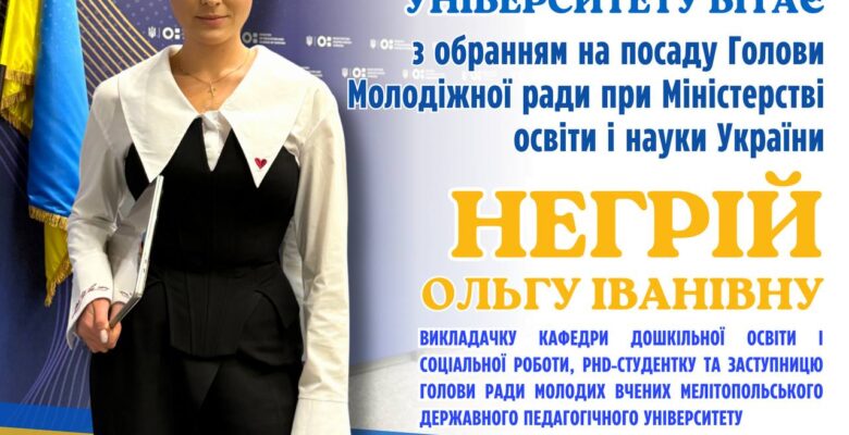 🎓⭐️ Колектив Мелітопольського державного педагогічного університету щиро вітає Ольгу Іванівну Негрій з обранням Головою Молодіжної ради при Міністерстві освіти і науки України!