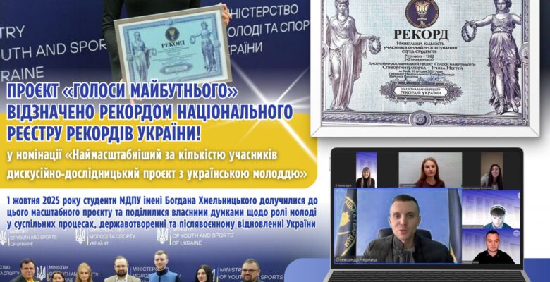 За підсумками реалізації проєкт «Голоси Майбутнього» відзначено рекордом Національного реєстру рекордів України у номінації «Наймасштабніший за кількістю учасників дискусійно-дослідницький проєкт з українською молоддю» (10 грудня 2025 року).