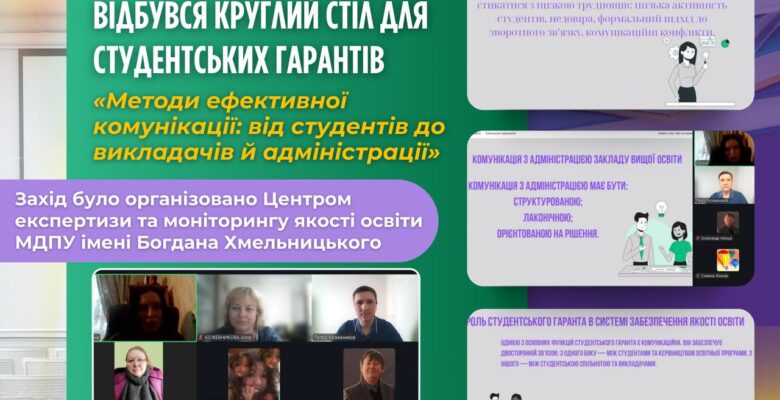📅✅ 24 грудня Центром експертизи та моніторингу якості освіти МДПУ імені Богдана Хмельницького було успішно проведено круглий стіл для студентських гарантів ‼️🗣️ «Методи ефективної комунікації: від студентів до викладачів й адміністрації».