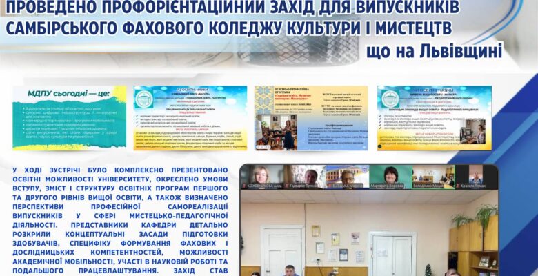 🎓 З метою інформування потенційних вступників про освітні можливості, умови вступу та перспективи професійної самореалізації 13 лютого 2026 року кафедрою освітології та педагогіки мистецтва було проведено профорієнтаційний захід для випускників Самбірського фахового коледжу культури і мистецтв, що на Львівщині.