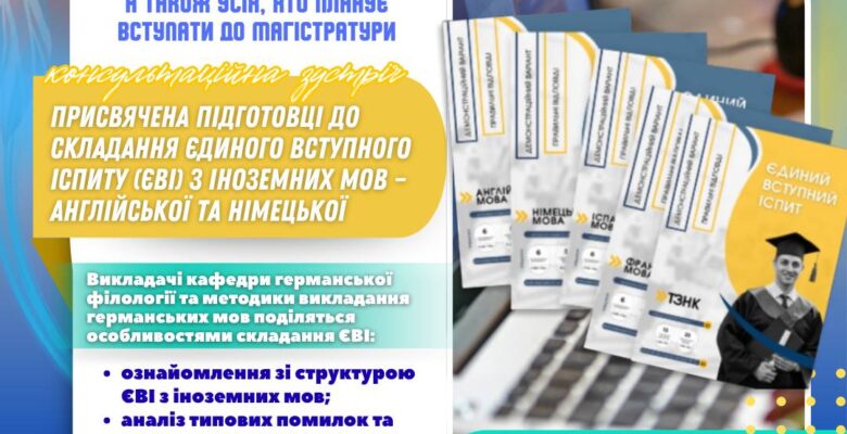 📚 Викладачі кафедри германської філології та методики викладання германських мов поділяться особливостями складання ЄВІ, проведуть детальний розбір тестових завдань та нададуть слушні рекомендації, які допоможуть вам впевнено почуватися під час іспиту.