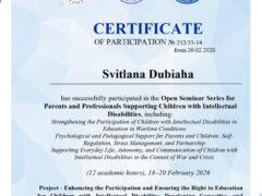 Участь у роботі Всеукраїнського науково-практичного семінару «Упровадження європейських цінностей у систему спеціальної освіти та інклюзивного навчання в Україні», сертифікат 2505-24 (3 години, 0,1 кр.)