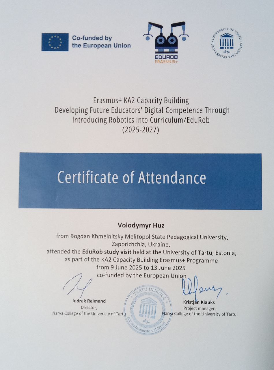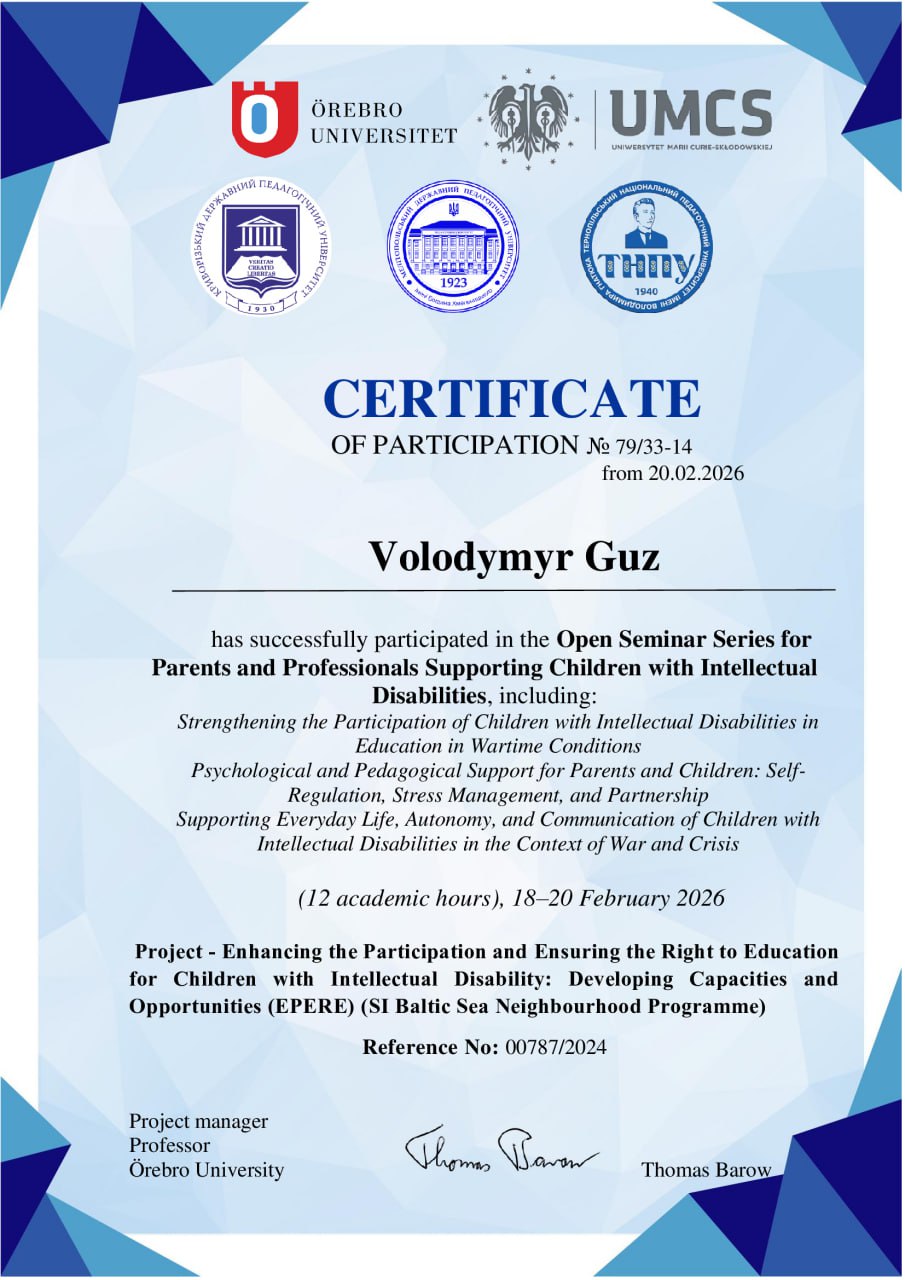 Наукове стажування в Катовіцькій технологічній школі, Польща (180 год.). Тема «Освіта та індивідуалізація в навчальних закладах». З 25.06.2020 по 04.10.2020 р. Сертифікат №59 від 04.10.2020 р.