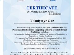 Форма навчання: дистанційна (платформа Zoom, Google Classroom) (з 12 листопада по 18 грудня 2022 р., 180 год / 6 кредитів ECTS).