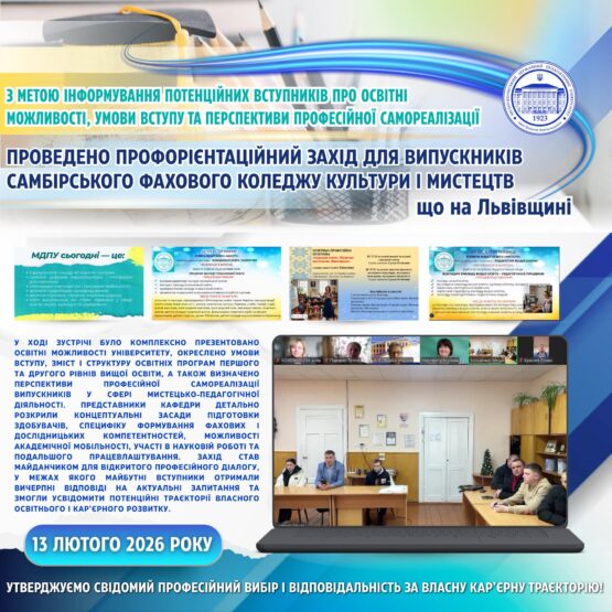13 лютого 2026 року – профорієнтаційний захід для випускників Самбірського фахового коледжу культури і мистецтв, що на Львівщині.