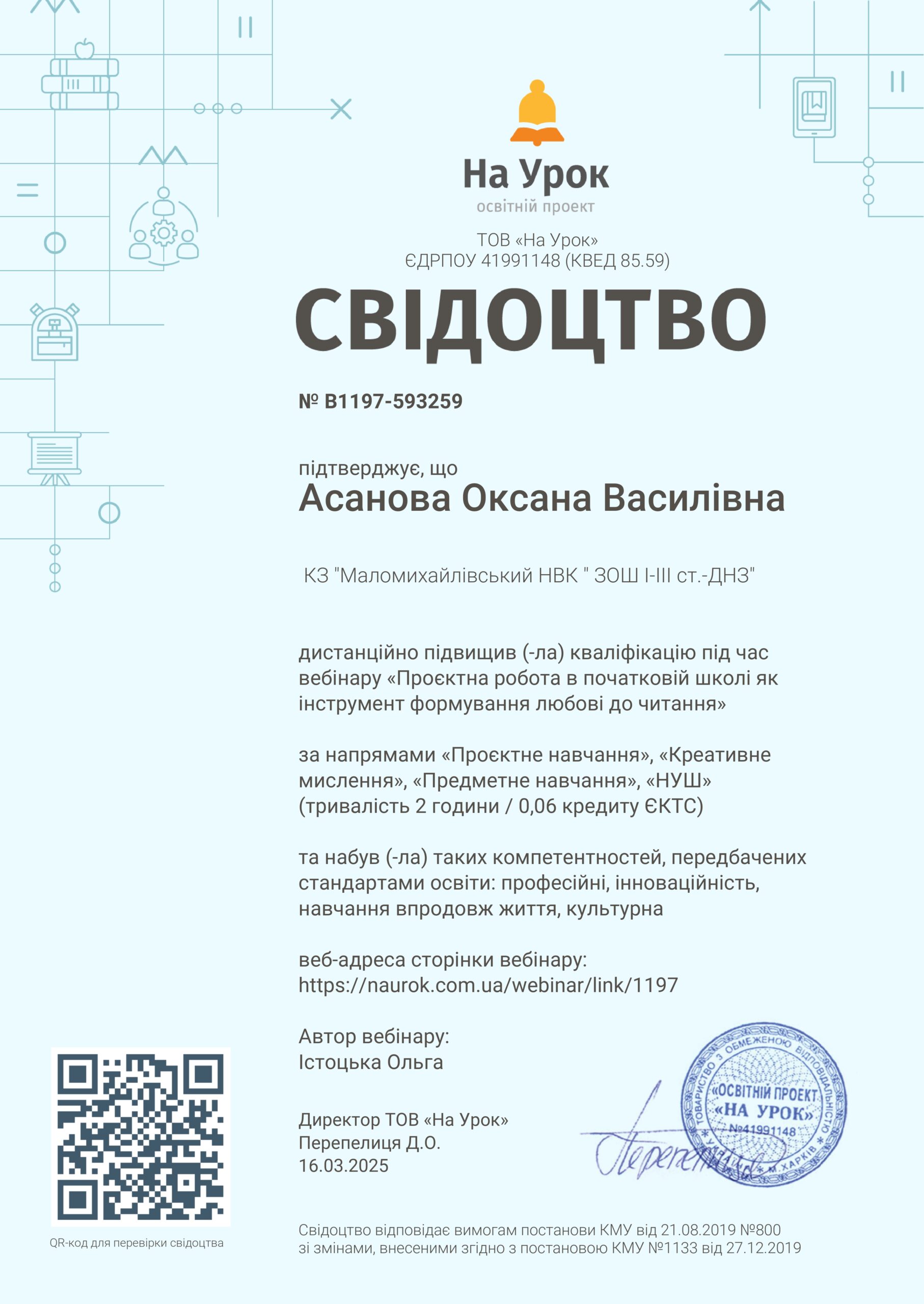 6. Відповідно до наказу ректора про визнання результатів навчання вноситься запис до навчальної картки здобувача.