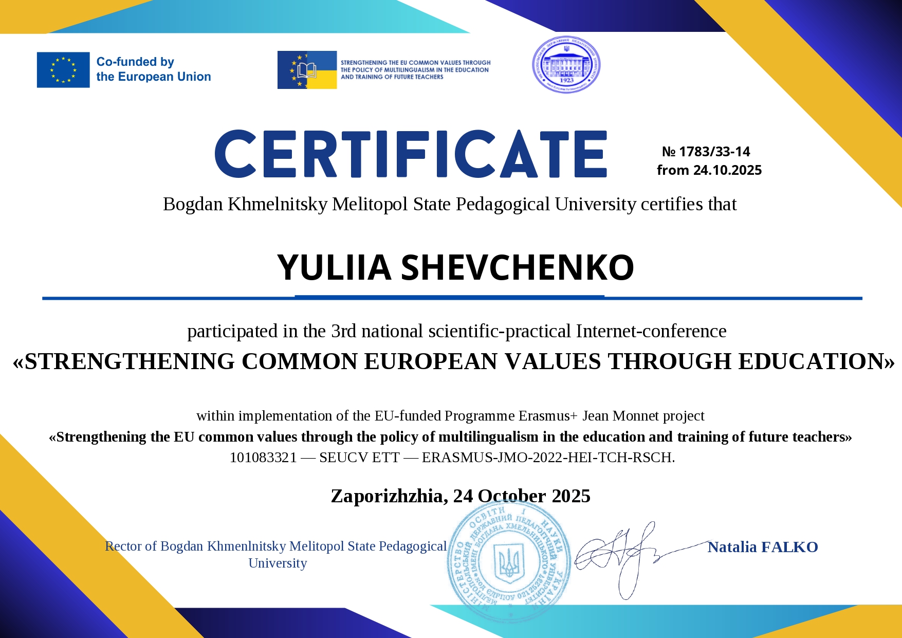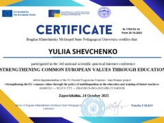 Стажування у Вищій технічній школі в Катовіце, Польща. 17.12.2018 по 06.04.2019 р. Свідоцтво № 34 від 6.04.2019 р. (180 год.)