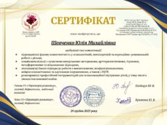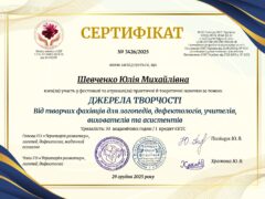 Курс за темою: «Дизартрія: діагностика, корекція та розвиток мовлення» (сертифікат № 239/2025, 6 год/0,2 кредити ЄКТС);