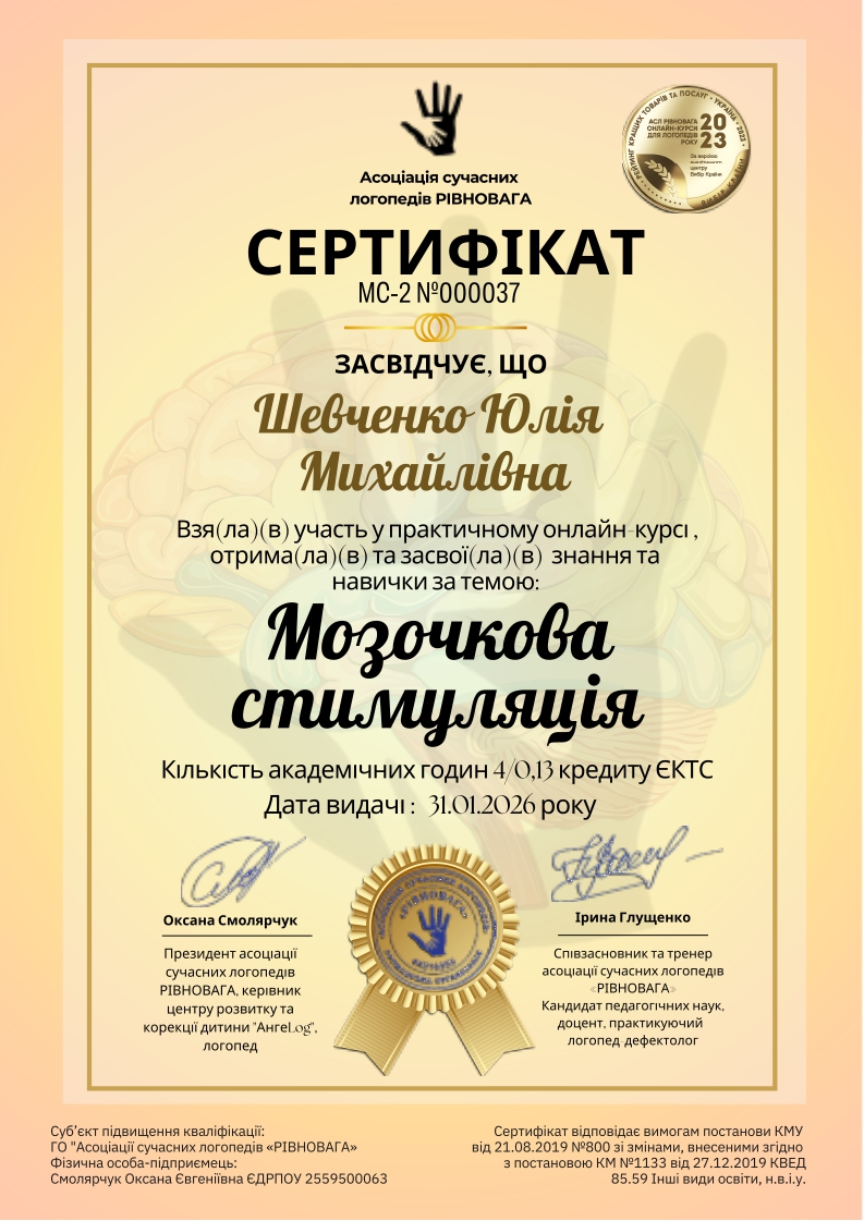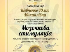 Практичний онлайн-курс «Мозочкова стимуляція» (сертифікат МС №000037 4год/0,13 кредит ЄКТС);