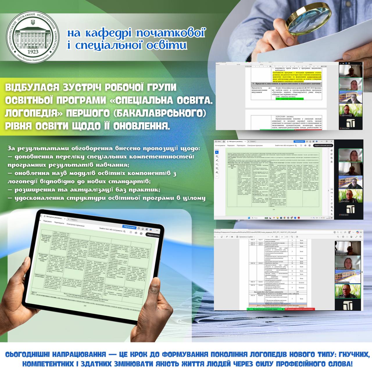 ✨ Освітня програма — це не статичний документ, а жива система, що еволюціонує разом із викликами часу. Сьогоднішні напрацювання — це крок до формування покоління логопедів нового типу: гнучких, компетентних і здатних змінювати якість життя людей через силу професійного слова.