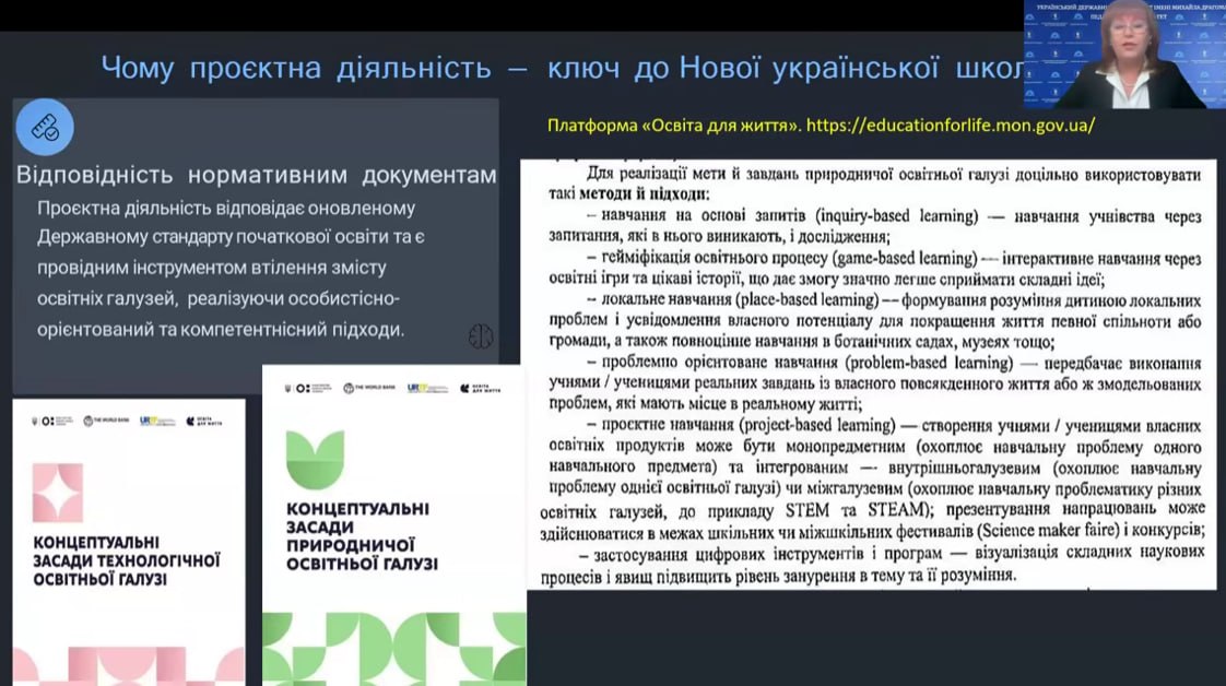Під час лекції було розглянуто ключові аспекти організації проєктної діяльності в початковій школі, зокрема: сутність і етапи проєктної роботи, особливості її впровадження відповідно до сучасних освітніх стандартів, роль цифрових інструментів та батьків у реалізації навчальних проєктів, а також підходи до оцінювання результатів діяльності учнів.