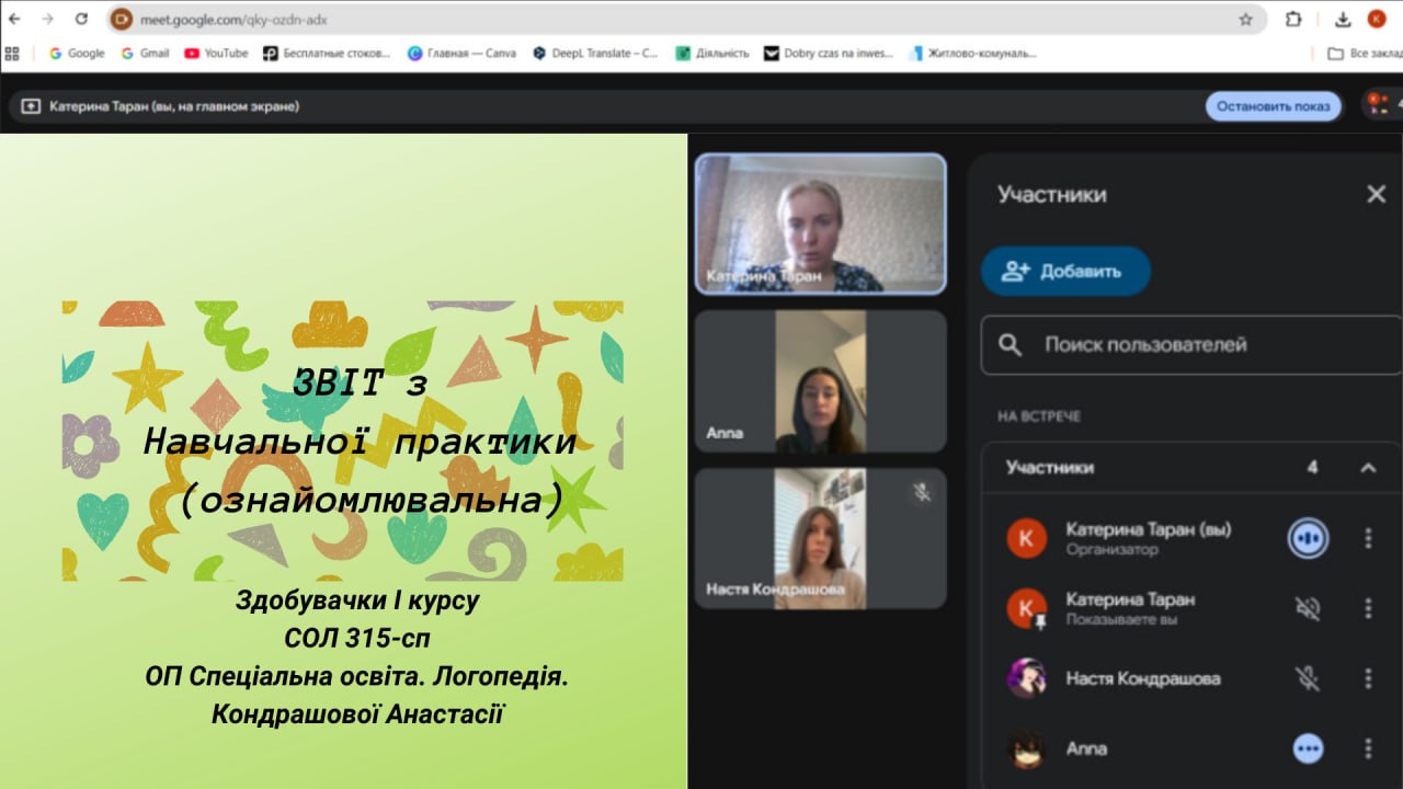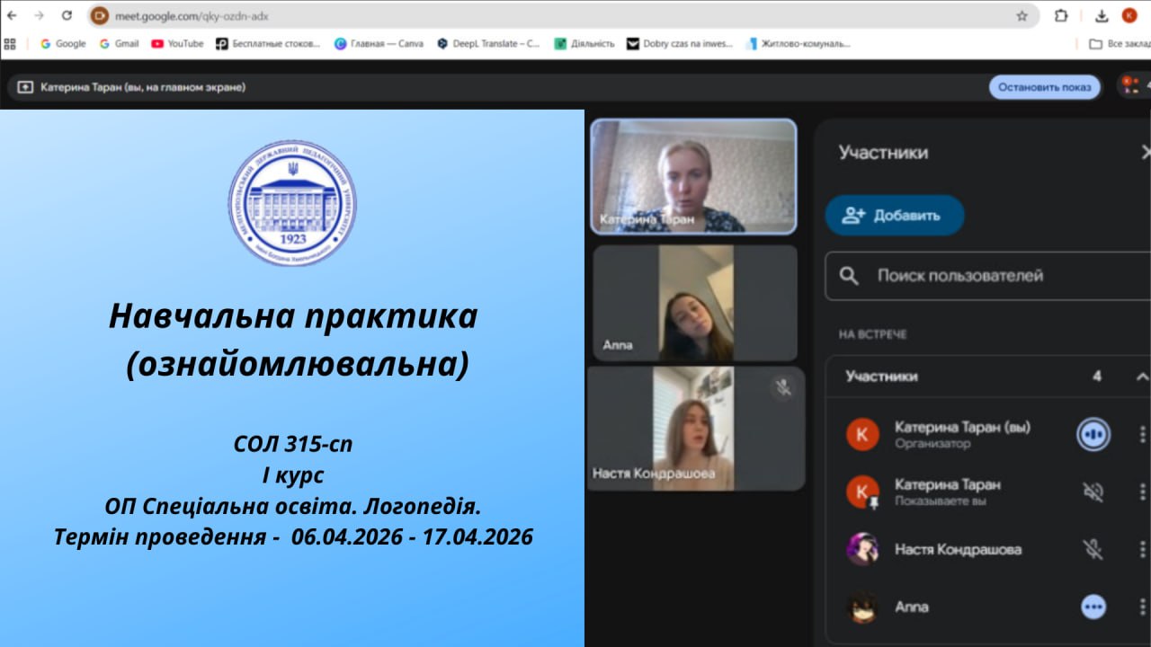 17 квітня 2026 року відбулася звітна конференція за результатами проходження навчальної практики (ознайомлювальної) здобувачів І курсу спеціальності А6.01 Спеціальна освіта (Логопедія) денної форми навчання