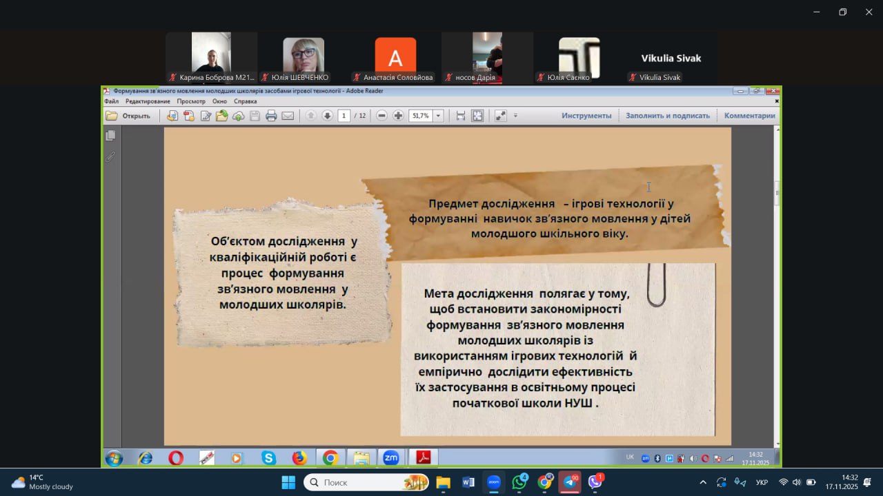 17 листопада 2025 року відбувся передзахист кваліфікаційних робіт здобувачів спеціальності 013 Початкова освіта другого (магістерського) рівня вищої освіти,