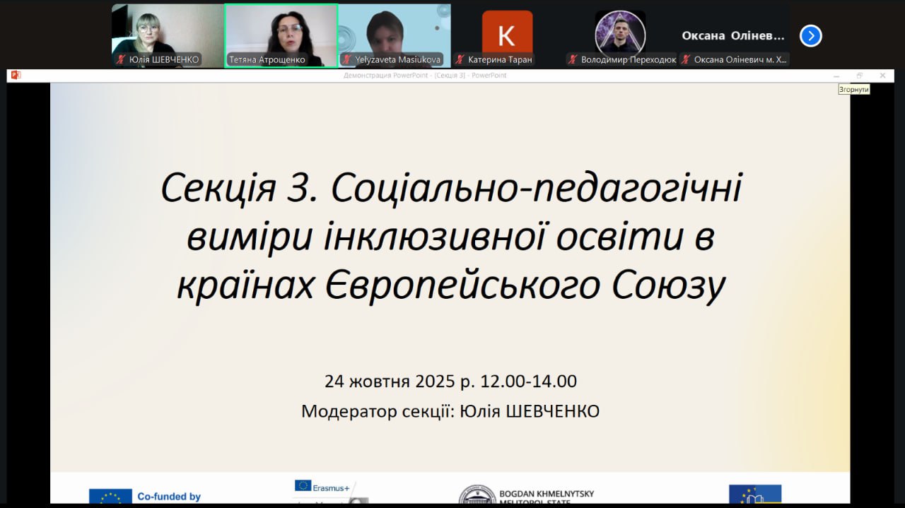 24 жовтня 2025 року в рамках III Всеукраїнської науково-практичної інтернет-конференції «Зміцнення спільних європейських цінностей через освіту» пройшло секційне засідання, присвячене сучасним підходам до інклюзивної освіти в країнах Європейського Союзу.