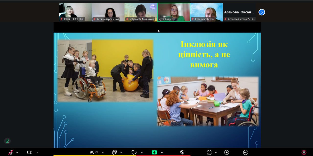 Модератором заходу була Юлія Шевченко, яка координувала обговорення ключових соціально-педагогічних аспектів інклюзії, обмін досвідом та практиками, що сприяють формуванню цінностей рівності та взаємоповаги серед здобувачів освіти.