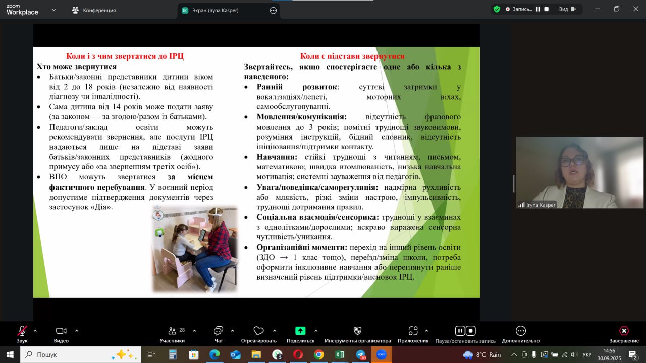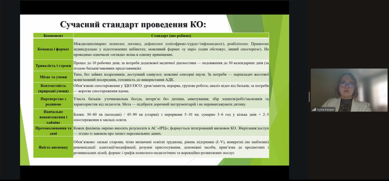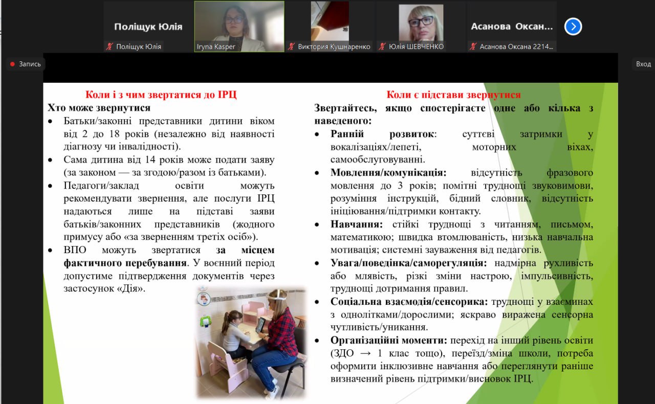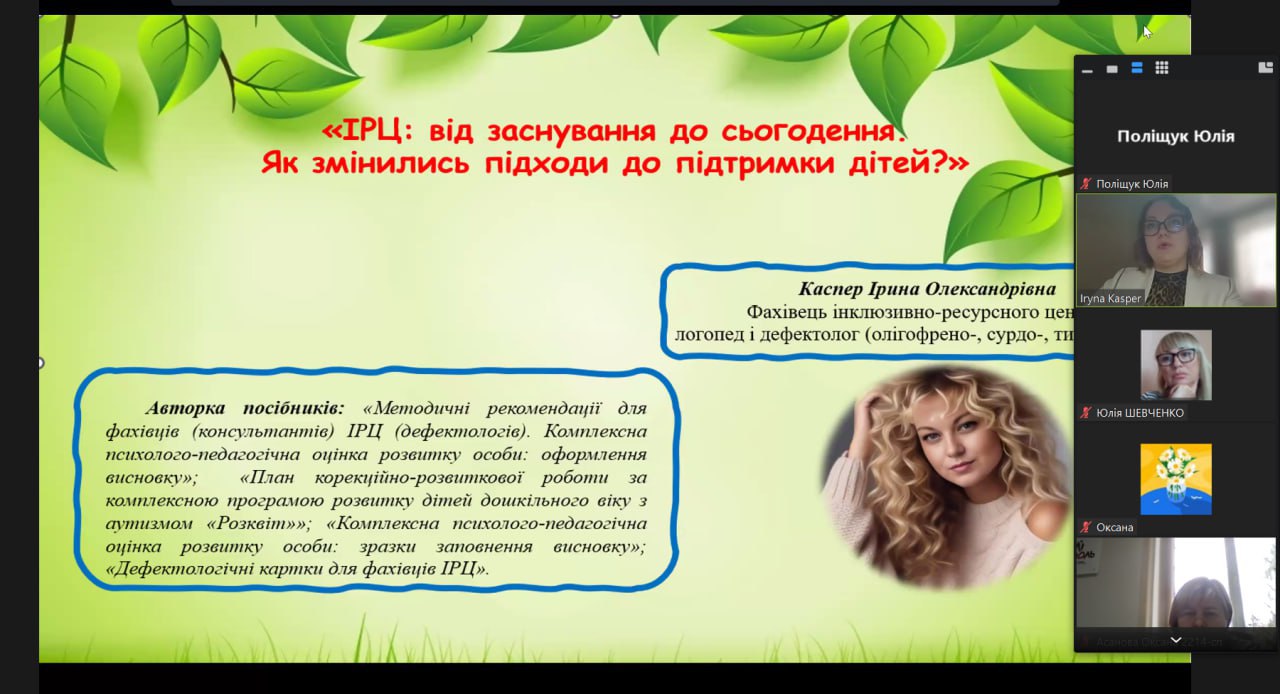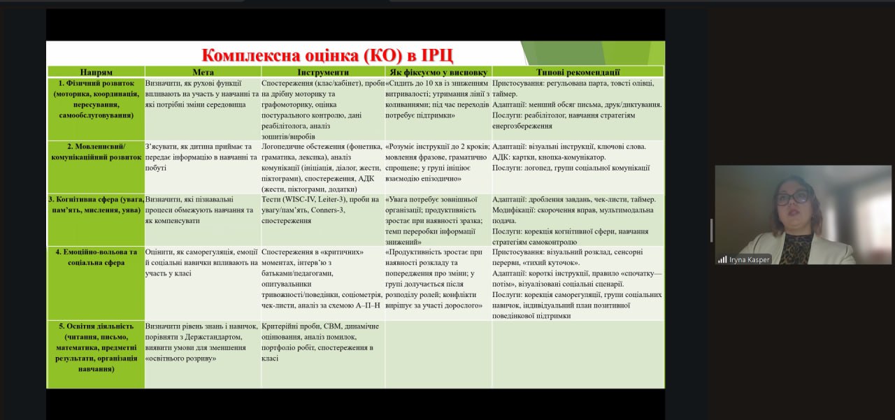 Спікером заходу стала Каспер Ірина — фахівець ІРЦ, корекційний педагог, логопед, олігофренопедагог, сурдопедагог, тифлопедагог.