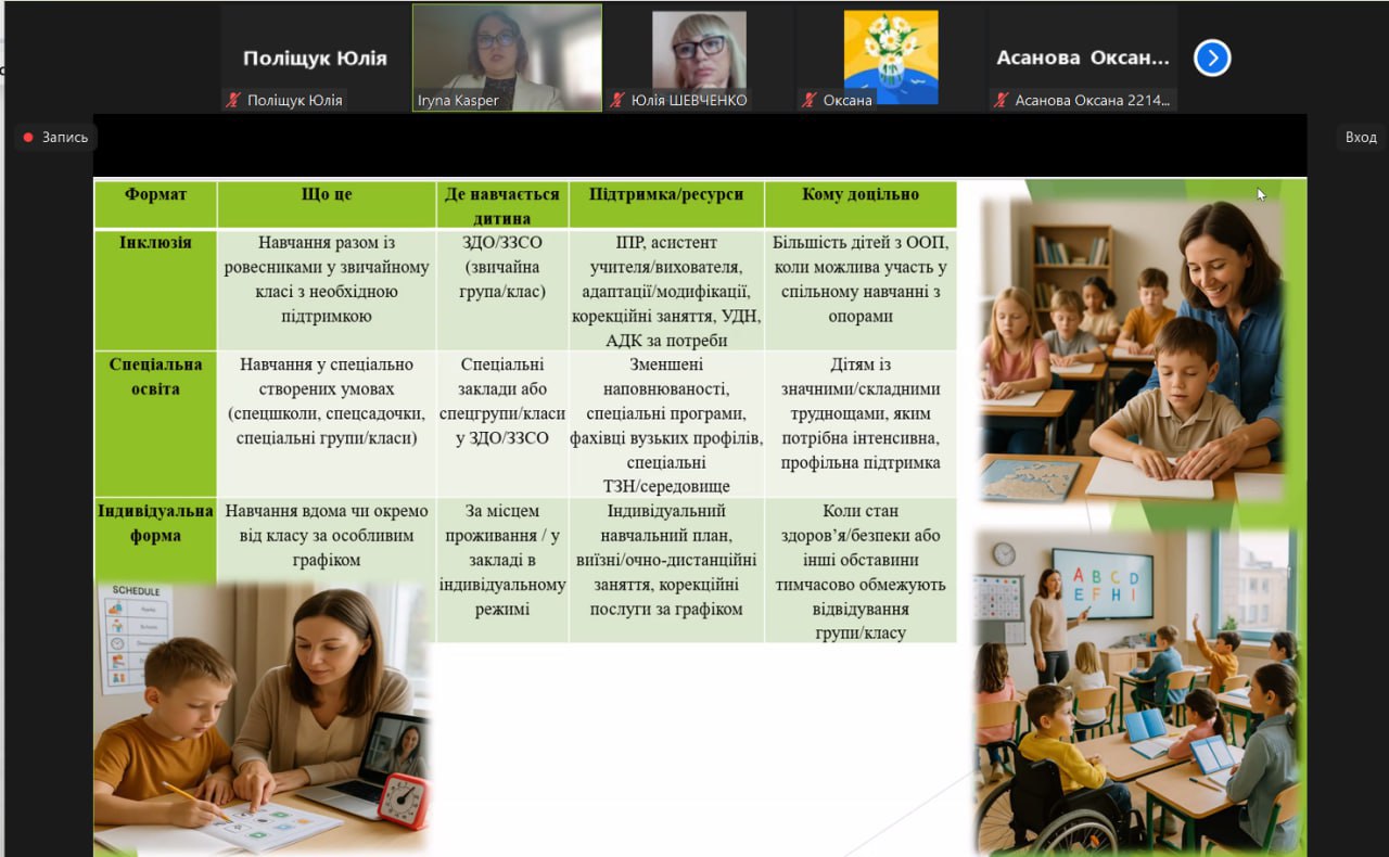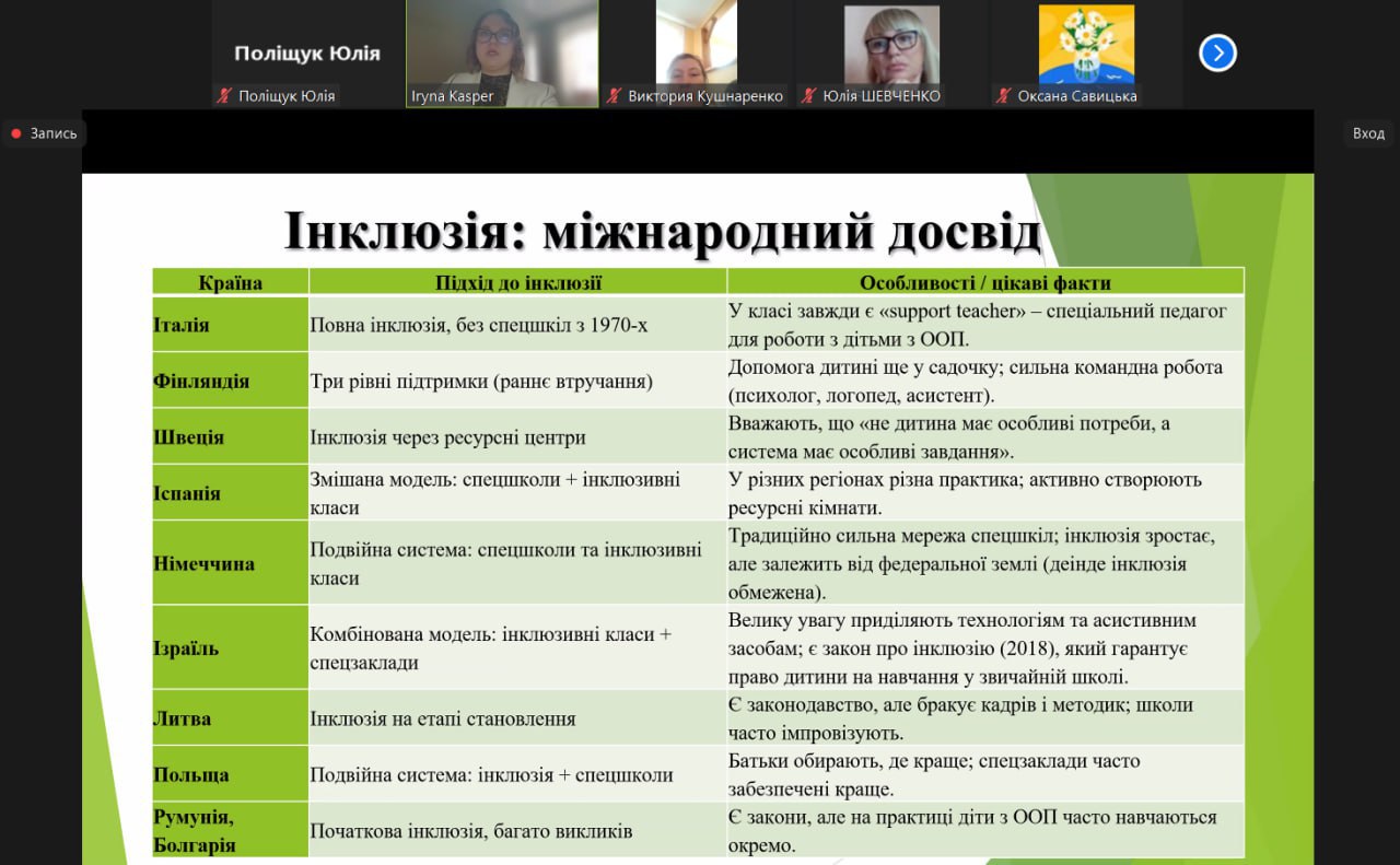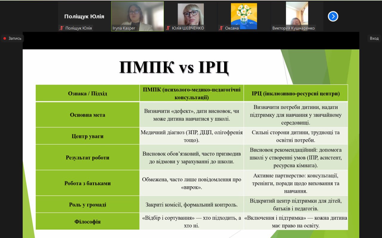 У своєму виступі лекторка окреслила основні етапи розвитку інклюзивно-ресурсних центрів та зміни у підходах до підтримки дітей з особливими освітніми потребами. Зокрема, було розглянуто: