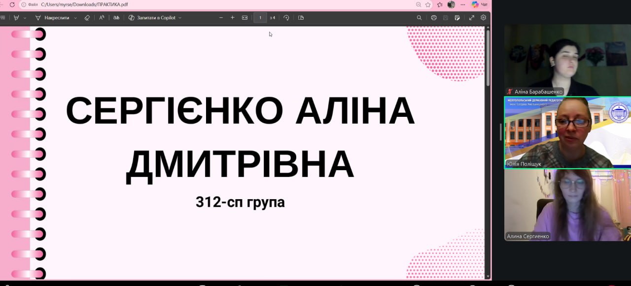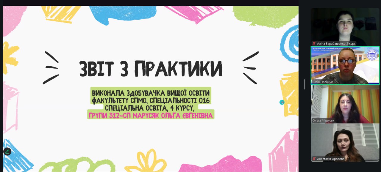 12.03.2026 року відбулося звітування з практики здобувачів освіти груп 2314-сп та 312-сп спеціальності 016 Спеціальна освіта. Здобувачі щиро, яскраво й емоційно розповідали про свій досвід проходження практики, ділилися власними спостереженнями, професійними відкриттями та труднощами.