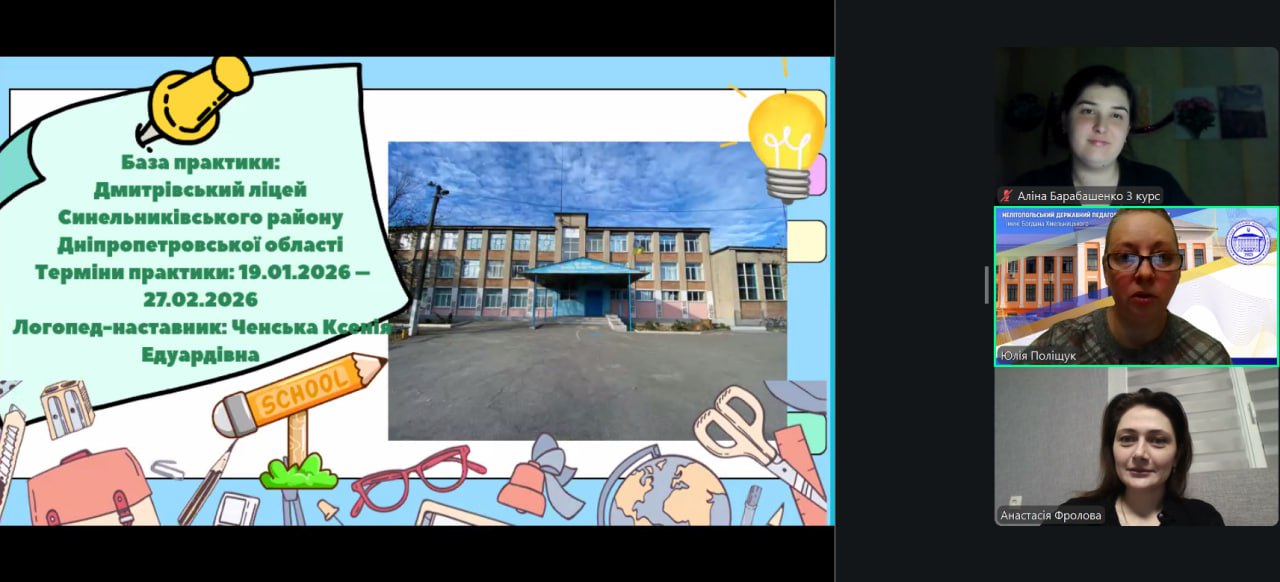 12.03.2026 року відбулося звітування з практики здобувачів освіти груп 2314-сп та 312-сп спеціальності 016 Спеціальна освіта